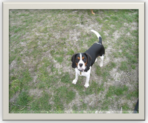 Gekke, jonge Sepke! Een beagle pur sang! Vol met streken en wordt af en toe op zijn plaats gezet in de roedel. Maar al lachend gaat hij door en weet waar zijn plek is. Een plezier om hem op te halen. Want al piepend, kwispelend en gillend van vreugde staat hij al klaar. Het luisteren gaat zeer goed. Af en toe zie je hem niet maar dan weet ik: ergens in de buurt is hij en hoppa daat is ie!! |
